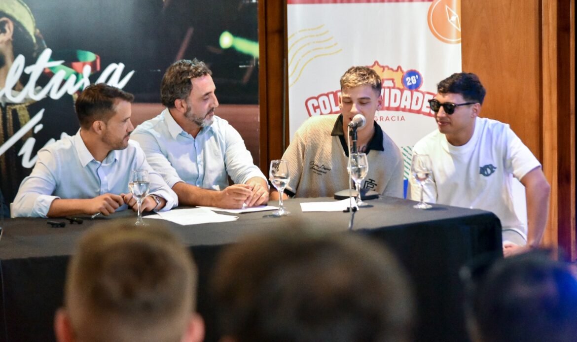 El Intendente Marcos Torres, acompañado por el Viceintendente, Jorge De Nápoli; el Presidente del XXXVII Encuentro Anual de Colectividades, Iván Poletta, el Secretario de Turismo del municipio, Mauro Proto presentó la nueva temporada junto a tres de los artistas que brindarán sus shows en en Colectividades: El Indio Lucio Rojas, Los Herrera y Martín Ferrera de La Clave Trío.